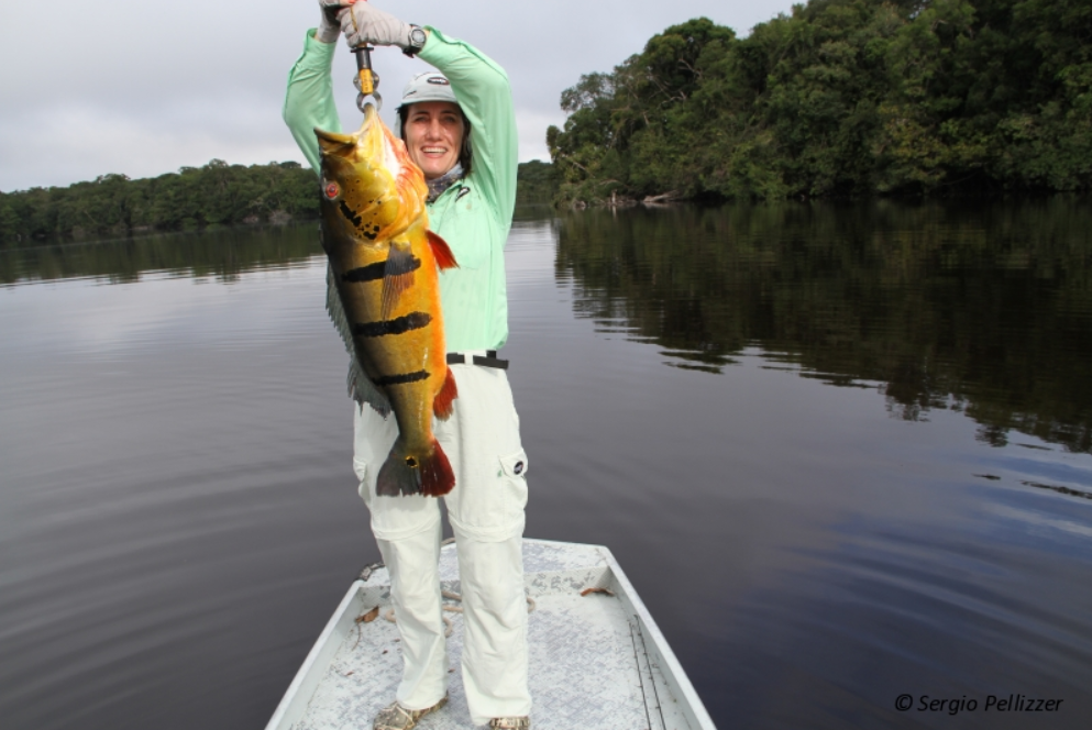 Uma das integrantes do seleto clube das 20lb é a pescadora Isabel Pellizzer, que no final de 2019 conseguiu seu segundo tucunaré acima desse peso.